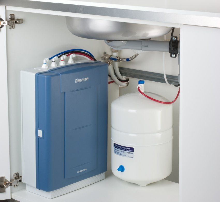 Loại hệ thống thứ hai sử dụng nguyên tắc thẩm thấu ngược. Bề ngoài, các bộ lọc như vậy giống với các thiết bị hấp thụ thông thường, nhưng chúng có một sự khác biệt đáng kể: một số bộ phận bổ sung giúp làm sạch tốt hơn. Có thể có một số mô-đun như vậy: từ một đến bốn, và trong một số mô hình cao cấp thậm chí là năm.