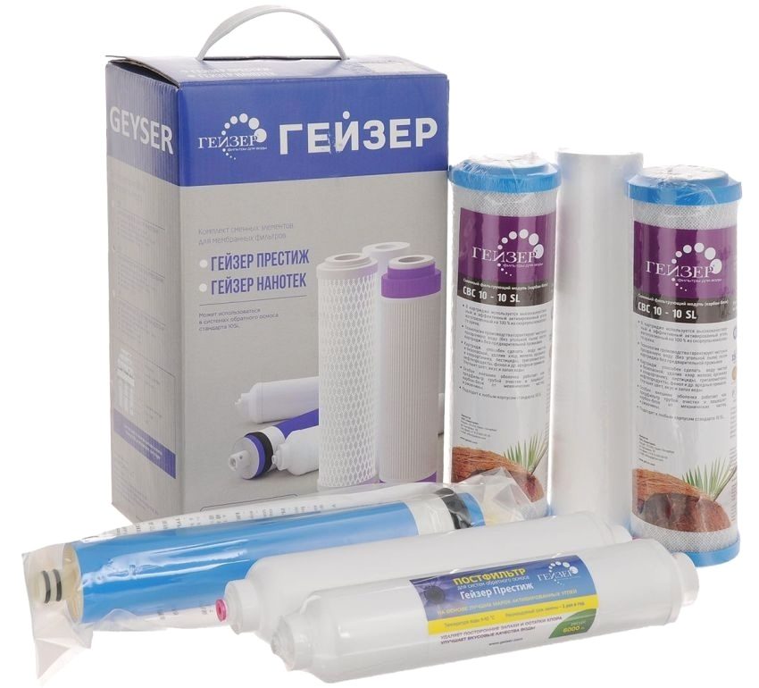 Nếu phát hiện dư thừa các chất như clo, sắt hoặc các hợp chất hóa học khác trong nước, nhưng mức độ cứng tương ứng với tiêu chuẩn, thì bộ hộp mực sau đây sẽ đủ: